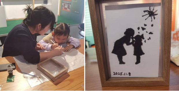 活动中选用的咖啡豆源自思乐得援滇项目,是品牌践行乡村振兴的公益见证。通过研磨与萃取,深度体验了这份爱心成果。而使用的思乐得乐萃杯凭借便捷操作、安全材质等优势,让孩子们轻松上手(放入咖啡粉—注水—按压萃取),不少孩子认真地将亲手制作的咖啡端给父母,稚嫩的一句“爸爸妈妈辛苦了”,让现场充满温情。咖啡制作环节结束后,大家携手开启环保创作之旅,父母与孩子共同将咖啡渣巧妙创作成独一无二的沙画作品,每一幅作品都承载着满满的爱意与环保理念。